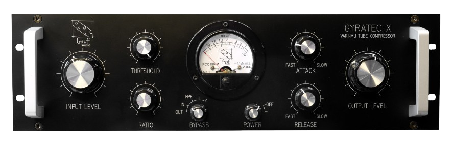 The G10 is a compressor based on the classic vari-mu principle, where all gain reduction is done with tubes. The user has full control over the traditional threshold, ratio, attack and release parameters. In addition, a highpass filter (with three different cut-frequencies) can be switched into the sidechain, so that the compressor does not react to low frequencies.